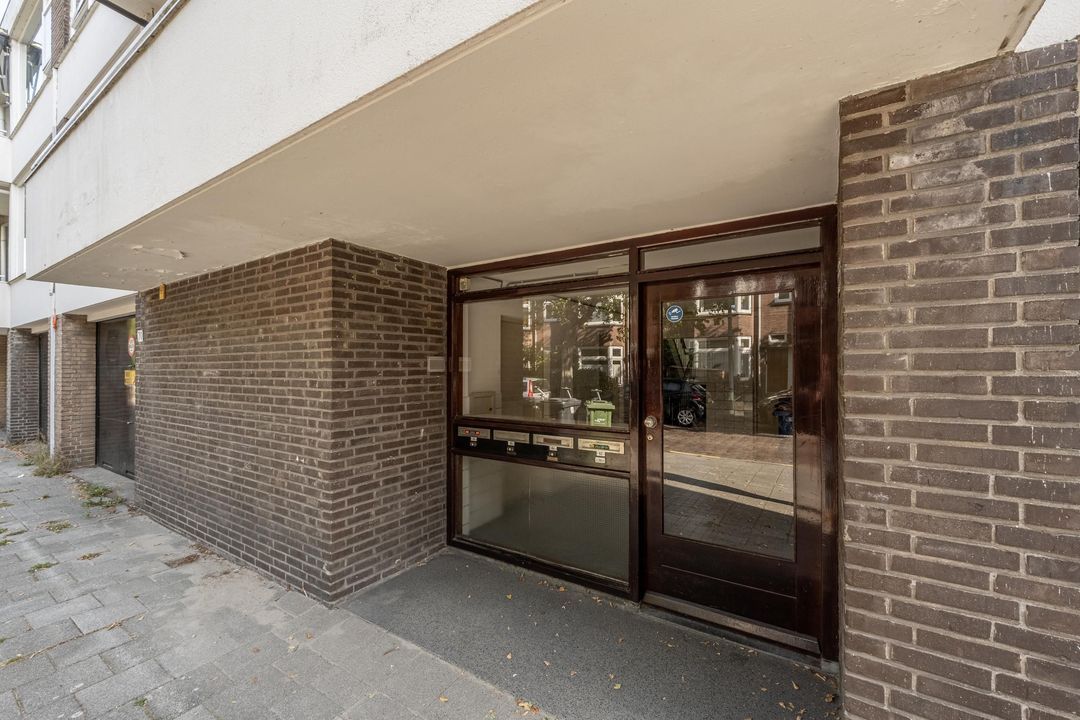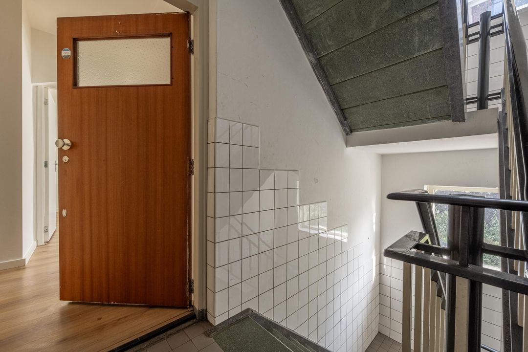 Ruime gezamenlijke afgesloten entree met bellentableau, brievenbussen, toegang tot de bergingen en tot de trapopgang.