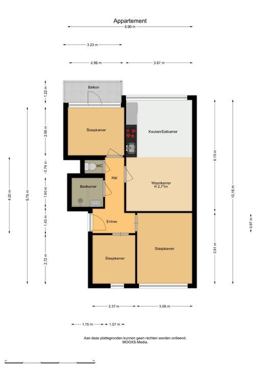 Deze presentatie is met zorg samengesteld, onder andere (maar niet uitsluitend) aan de hand van de door opdrachtgever (verkoper/verhuurder) aan makelaar verstrekte gegevens en tekeningen. Deson-danks kunnen aan deze presentatie geen rechten worden ontleend en aanvaardt de makelaar of zijn op-drachtgever (verkoper/verhuurder) geen enkele aansprakelijkheid voor enige onvolledigheid, onjuistheid of anderszins -dan wel de gevolgen daarvan- van de in deze presentatie verstrekte informatie of elke andere aan de (kandidaat) koper of huurder (of andere belanghebbende) verstrekte informatie m.b.t. het te koop (of te huur) aangeboden object. Alle opgegeven maten en oppervlakten zijn daarnaast slechts indicatief. Mocht deze presentatie of andere verstrekte informatie m.b.t. het te koop (of te huur) aangeboden object vragen oproepen, dan nodigen wij je van harte uit deze onder onze (makelaar) aan-dacht te brengen.