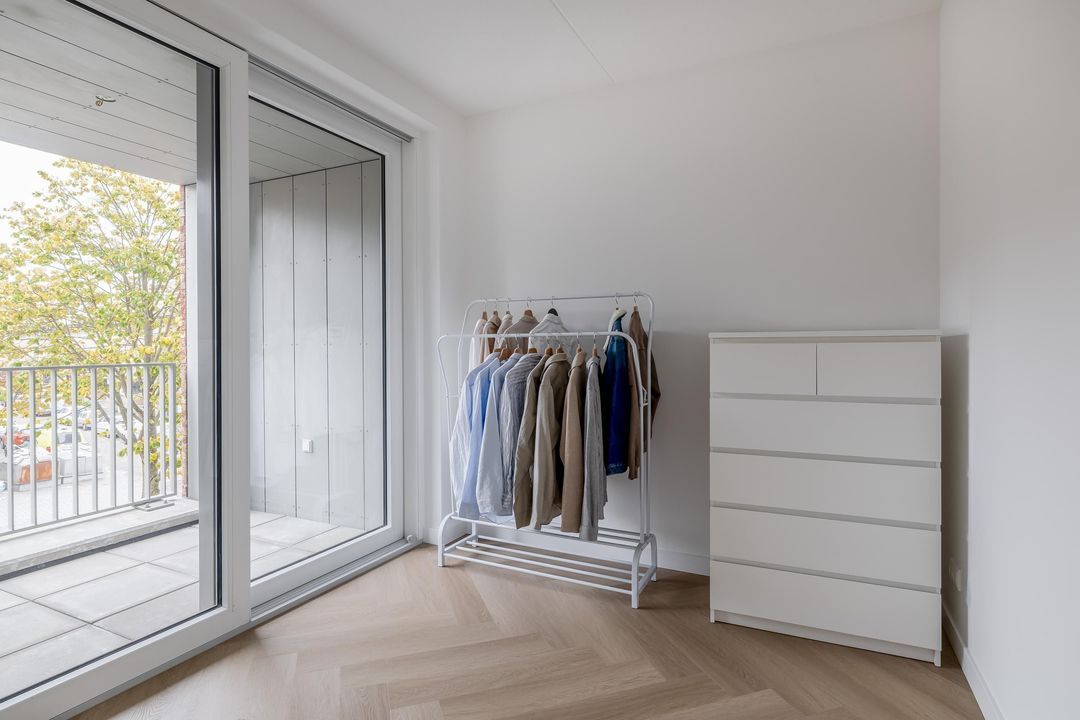 Op deze verdieping bevinden zich twee slaapkamers. De eerste slaapkamer is gelegen aan de voorzijde en is, net als de rest van de woning, afgewerkt met een hoogwaardige visgraat PVC-vloer. Dankzij het Franse balkon en de prettige lichtinval is dit een volwaardige kamer die zich uitstekend leent als master bedroom. De tweede slaapkamer beschikt eveneens over dezelfde visgraat PVC-vloer en biedt toegang tot een ruim balkon op het zuidoosten. Een heerlijke plek om buiten te zitten en ideaal als slaap-, werk- of logeerkamer.