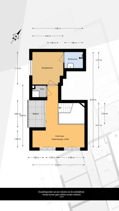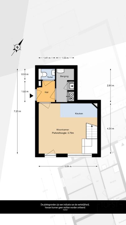 Deze presentatie is met zorg samengesteld, onder andere (maar niet uitsluitend) aan de hand van de door opdrachtgever (verkoper/verhuurder) aan makelaar verstrekte gegevens en tekeningen. Desondanks kunnen aan deze presentatie geen rechten worden ontleend en aanvaardt de makelaar of zijn opdrachtgever (verkoper/verhuurder) geen enkele aansprakelijkheid voor enige onvolledigheid, onjuistheid of anderszins -dan wel de gevolgen daarvan- van de in deze presentatie verstrekte informatie of elke andere aan de (kandidaat) koper of huurder (of andere belanghebbende) verstrekte informatie m.b.t. het te koop (of te huur) aangeboden object. Alle opgegeven maten en oppervlakten zijn daarnaast slechts indicatief. Mocht deze presentatie of andere verstrekte informatie m.b.t. het te koop (of te huur) aangeboden object vragen oproepen, dan nodigen wij je van harte uit deze onder onze (makelaar) aandacht te brengen.