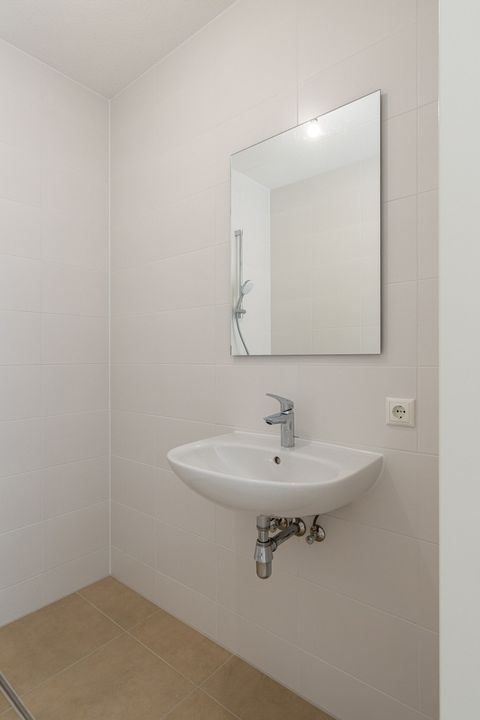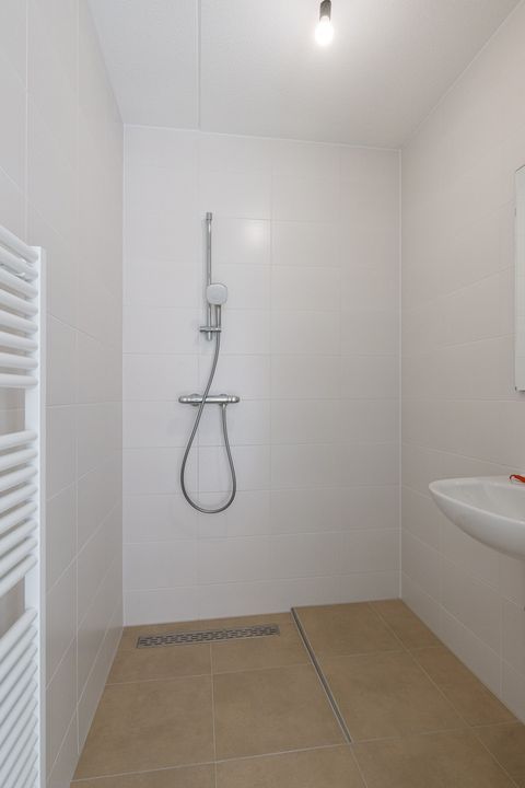 Verder is er een aparte wasruimte en de slaapkamer met een ensuite badkamer, voorzien van wand- en vloertegels, een wastafel, douche, designradiator en afzuigsysteem.