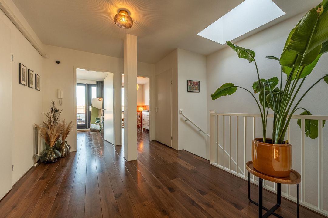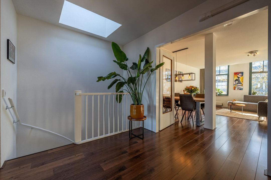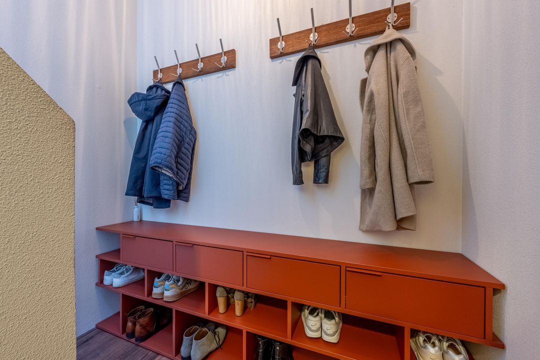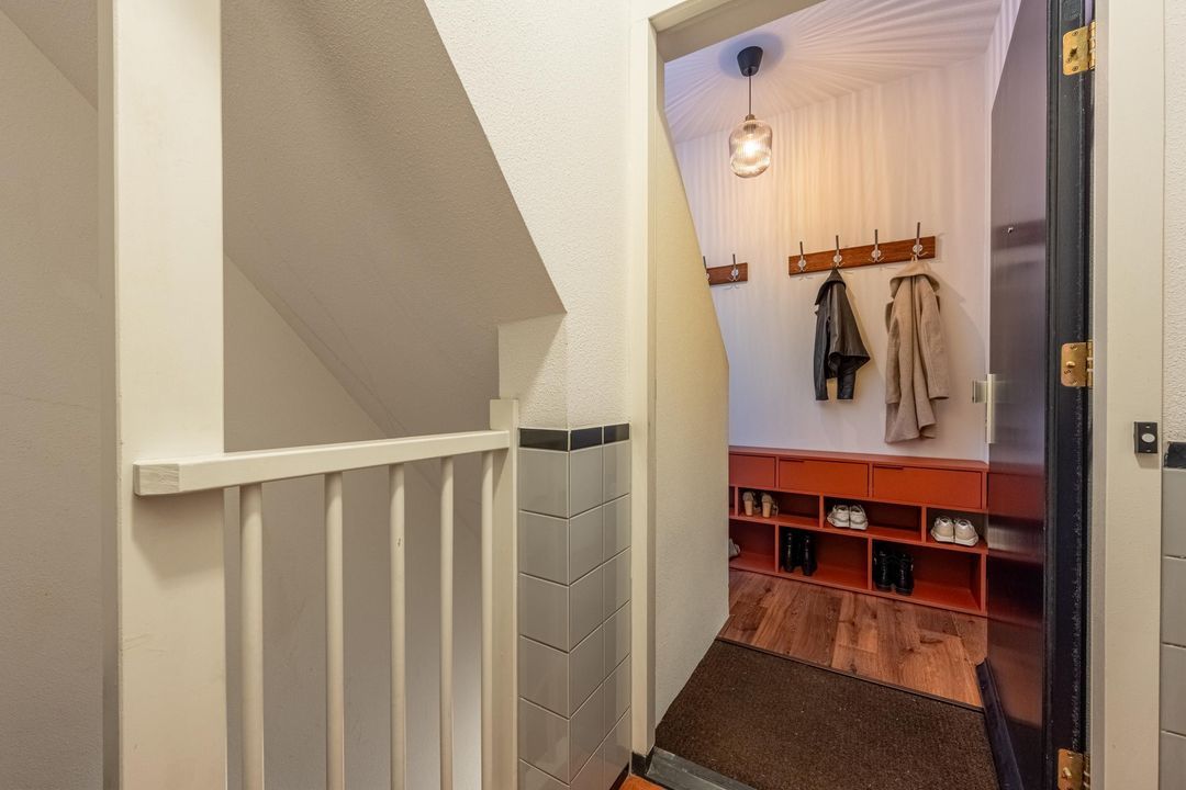Bij binnenkomst heb je toegang naar de hal met ruimte voor de garderobe kast en met de trap naar de 3e verdieping.