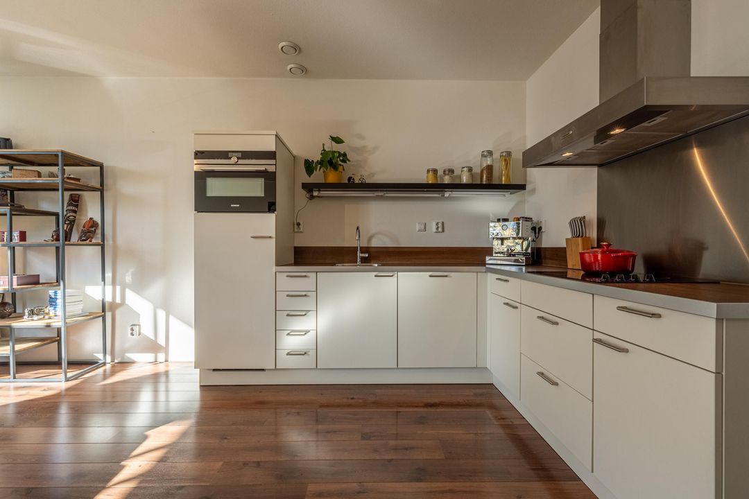 De open keuken sluit perfect aan op de woonruimte en is voorzien van alle gemakken: een keramische kookplaat, afzuigkap, combimagnetron/oven, koelkast met vriesvak en een vaatwasser. Hier kook je met gemak een snelle pasta of een uitgebreid diner voor vrienden.