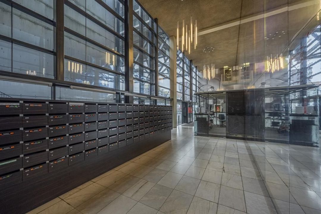 Via de hoofdentree, waar ook de huismeester is gevestigd, is er toegang tot de brievenbussen, lift/trappenhuis, parkeergarage en gezamenlijke fietsenstalling.