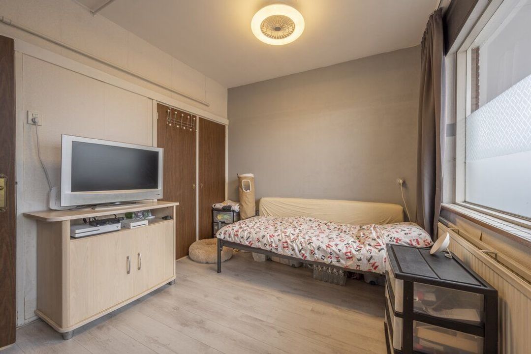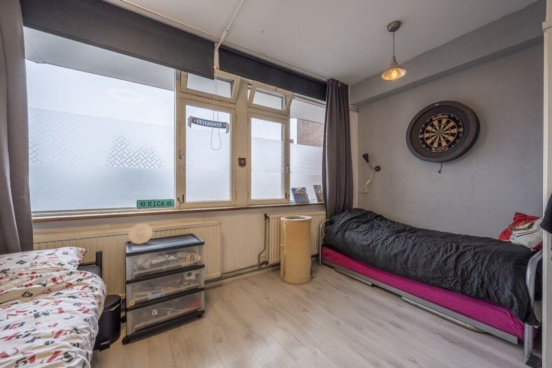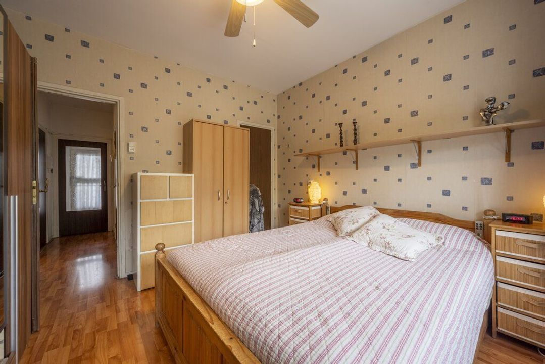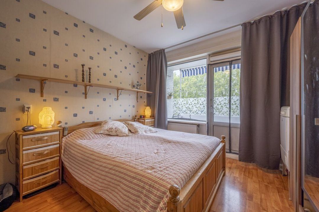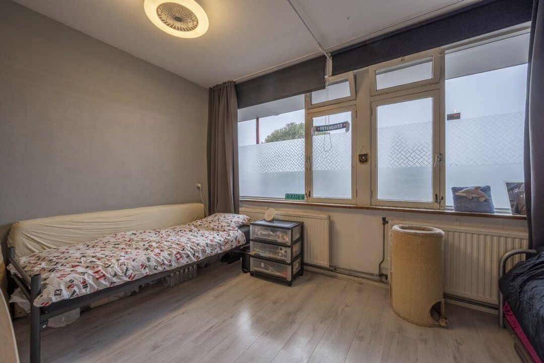 Beide slaapkamers zijn van een goed formaat en voorzien van een laminaatvloer. De kamer aan de voorzijde heeft vaste kasten met planken en de kamer aan de achterzijde geeft toegang tot het balkon.