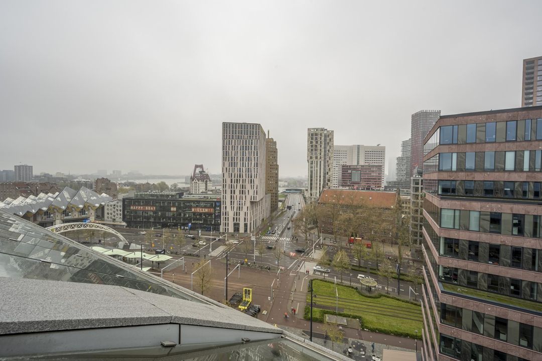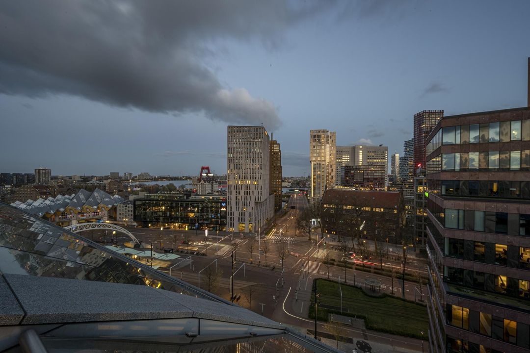 De locatie is zonder meer prefect. Het penthouse is gelegen in het Laurenskwartier met alle denkbare voorzieningen op loopafstand. Station Blaak (met een metro-, tram-, bus- en treinverbinding) is op steenworp afstand evenals de grootste markt van Rotterdam. Iedere dinsdag en zaterdag is op het plein van de Binnenrotte een enorme verscheidenheid en aanbod te vinden, zoals versproducten en bloemen. Het plein is omringd door cafés, een willekeur aan (culinaire) restaurants en sfeervolle terrassen. Shoppen kan naar hartenlust op de Meent, de Lijnbaan of in de koopgoot. Kortom: een fantastische mix tussen wonen, werken en leven in een bruisende stadse omgeving.