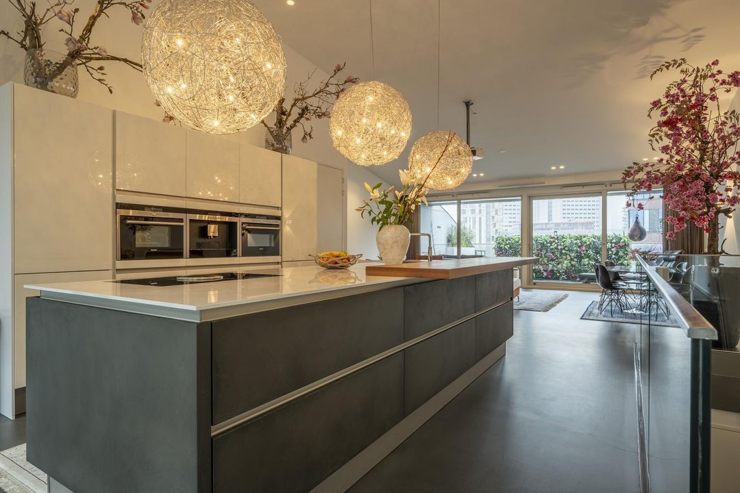 De keuken vormt het hart van de woning en is voorzien van alle luxe die je je kunt wensen, inclusief moderne apparatuur (o.a. Bora, stoomoven, koffiemachine en Quooker) en stijlvolle afwerkingen. Hier bereid je met gemak de heerlijkste maaltijden wanneer gasten aanschuiven aan de bar voor een drankje.
