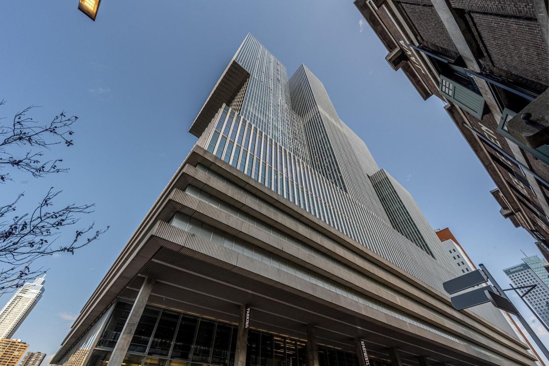 De Rotterdam, een iconisch gebouw ontworpen door Rem Koolhaas, is een ware 'verticale stad' waar wonen, winkelen en recreëren samenkomen in een bruisende omgeving van 160.000 m². Gelegen op de levendige Wilhelminapier aan de Nieuwe Maas, biedt dit dynamische complex een 24/7-stadsbeleving, met name door de ligplaats voor de cruiseschepen die regelmatig aanmeren bij de Cruise Terminal.