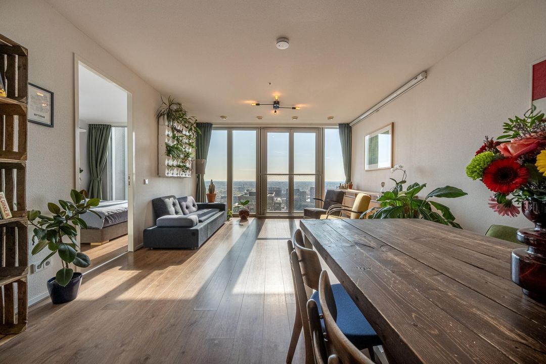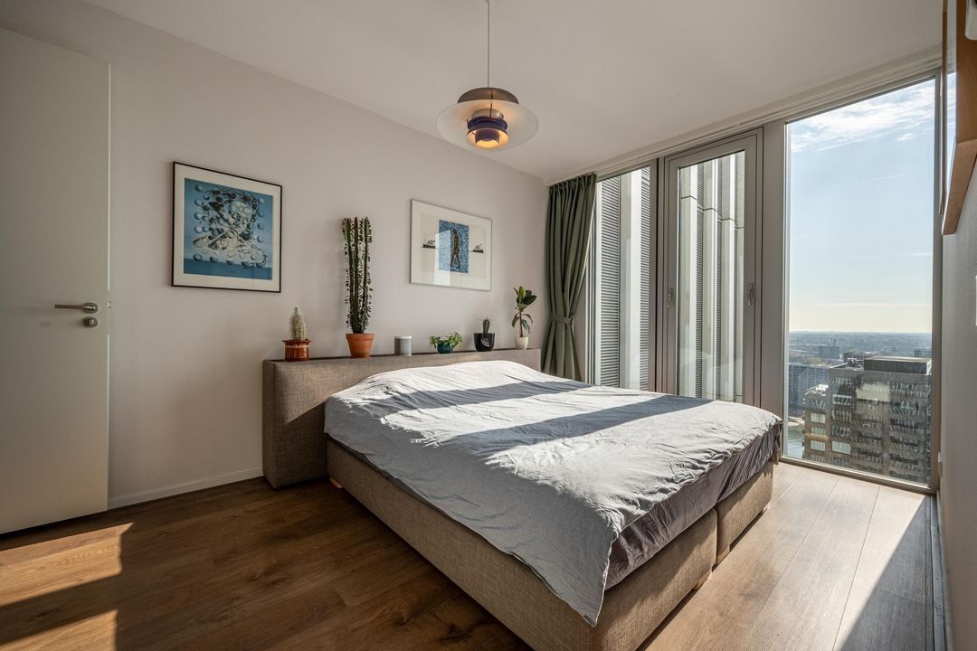 Wonen in een appartement waar de stad letterlijk aan je voeten ligt – dát is leven in De Rotterdam. Dit uitstekend verzorgde appartement van 77m² op de 24e verdieping biedt alles voor een ontspannen, stijlvol leven met een adembenemend uitzicht.