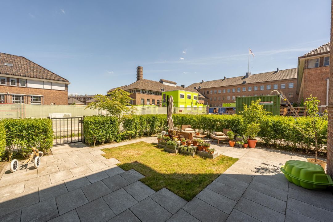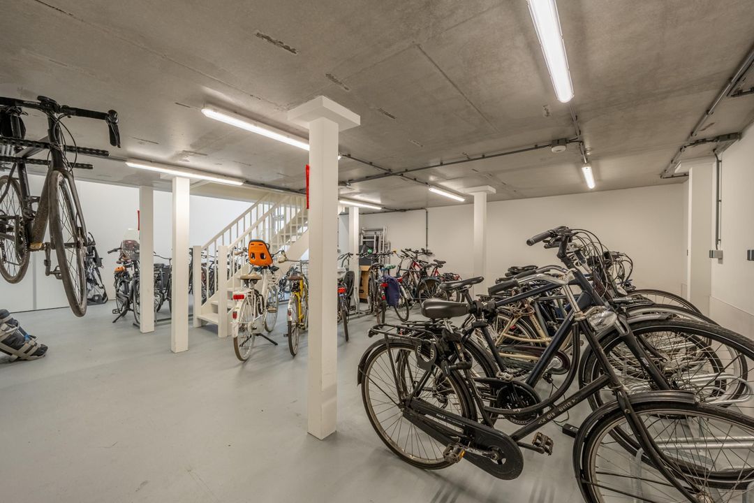 De woning beschikt over een eigen berging op de eerste verdieping welke inpandig toegankelijk is via een gemeenschappelijke ruimte. In deze ruimte is eveneens plaats voor het stallen van de fietsen en kan gebruik gemaakt worden van eigendommen van de VvE zoals tuingereedschap en statafels.