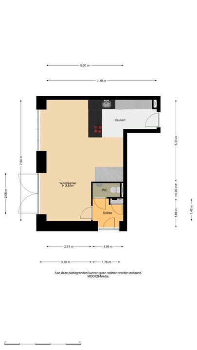Deze presentatie is met zorg samengesteld, onder andere (maar niet uitsluitend) aan de hand van de door opdrachtgever (verkoper/verhuurder) aan makelaar verstrekte gegevens en tekeningen. Desondanks kunnen aan deze presentatie geen rechten worden ontleend en aanvaardt de makelaar of zijn opdrachtgever (verkoper/verhuurder) geen enkele aansprakelijkheid voor enige onvolledigheid, onjuistheid of anderszins -dan wel de gevolgen daarvan- van de in deze presentatie verstrekte informatie of elke andere aan de (kandidaat) koper of huurder (of andere belanghebbende) verstrekte informatie m.b.t. het te koop (of te huur) aangeboden object. Alle opgegeven maten en oppervlakten zijn daarnaast slechts indicatief. Mocht deze presentatie of andere verstrekte informatie m.b.t. het te koop (of te huur) aangeboden object vragen oproepen, dan nodigen wij je van harte uit deze onder onze (makelaar) aandacht te brengen.