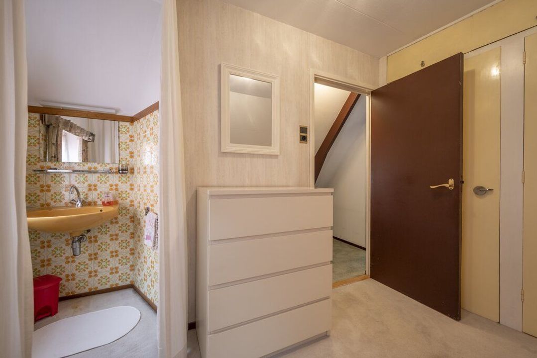 Op de eerste verdieping zijn 2 slaapkamers en is er opbergruimte in de vaste kasten en achter knieschotten. Beide kamers zijn voorzien van nette vloerbedekking en 1 van de kamers heeft een eigen wastafel.