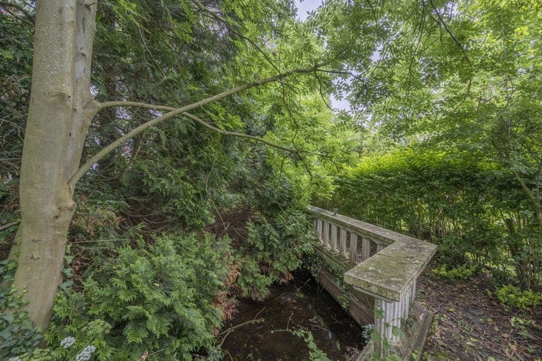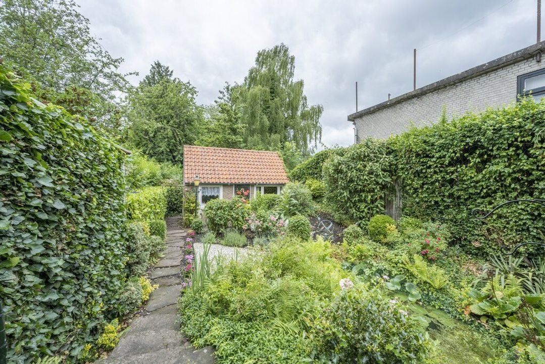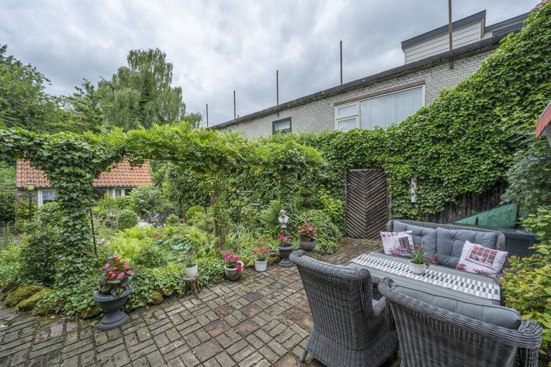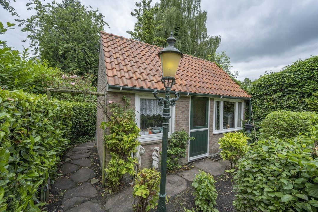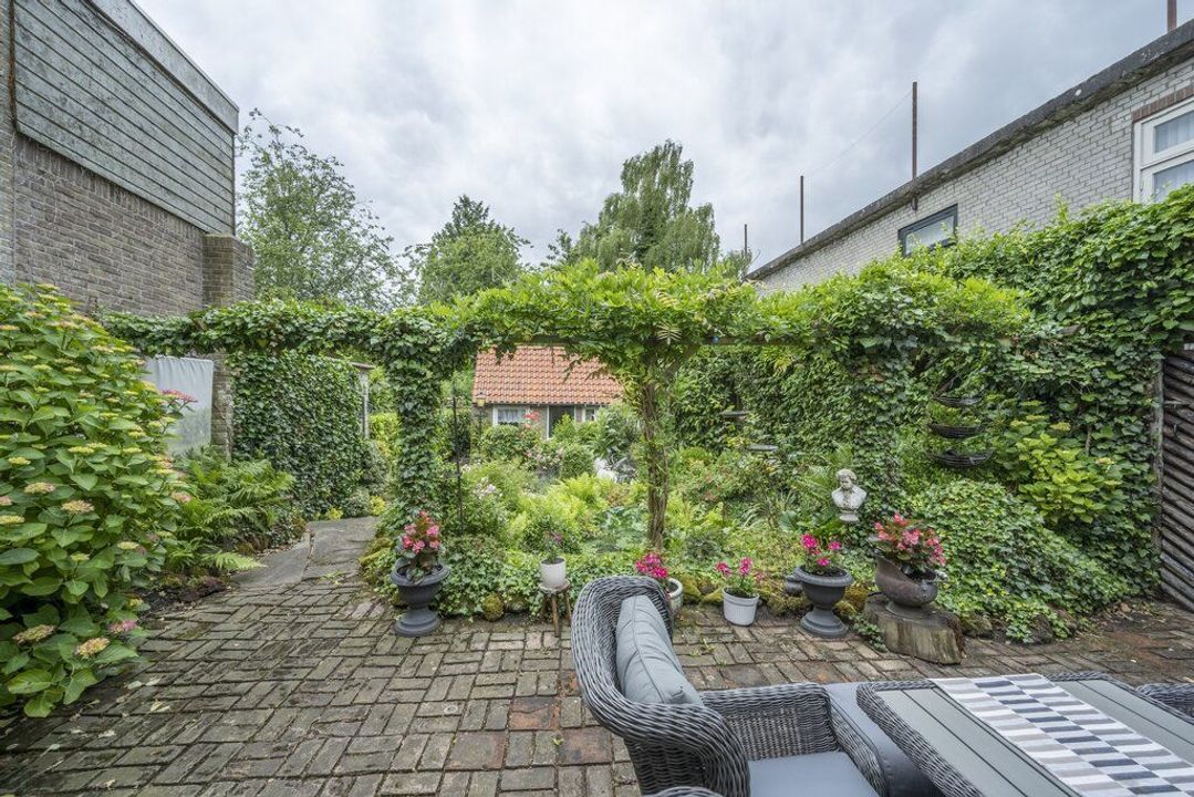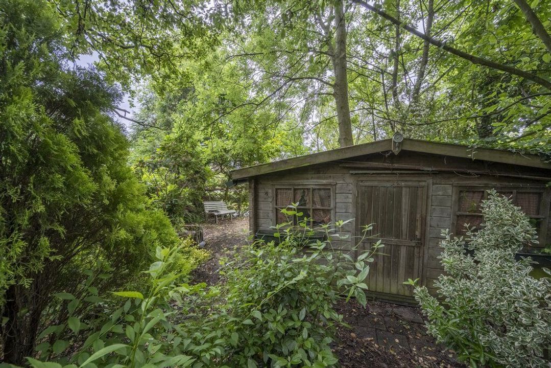 Verder heeft de tuin volwassen beplanting, vijver met pompsysteem, sierbestrating en 2 bergingen. De stenen berging is ingericht als werkplaats/kantoor waar de werkbank achter zal blijven. De andere houten berging staat meer in het achterste gedeelte van de tuin, hier zullen alle spullen en kasten achterblijven.