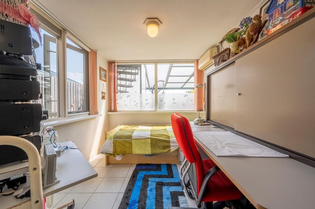 De slaapkamer, welke ook als werkkamer gebruikt kan worden, biedt toegang tot een berging met ruimte voor het opbergen van schoonmaakartikelen. Van deze ruimte kan ook een walk-in-closet worden gemaakt.