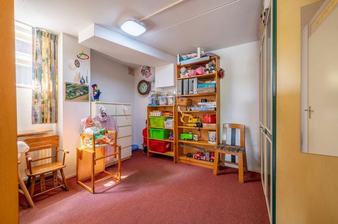 De wasruimte is voorzien van een wasmachine aansluiting en biedt toegang tot een hal met spoelbak en tot het toilet met fonteintje. Via de hal is er toegang tot de 2e slaapkamer van het souterrain en de garage. De slaapkamer heeft uitzicht op de tuin en is voorzien van airco en vloerverwarming. Dit is tevens een ideale ruimte voor een rustgevend kantoor.