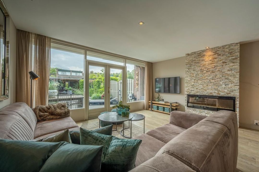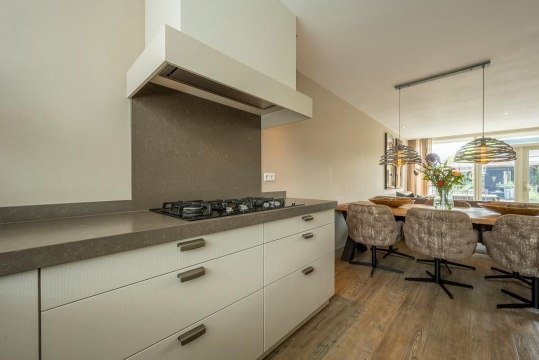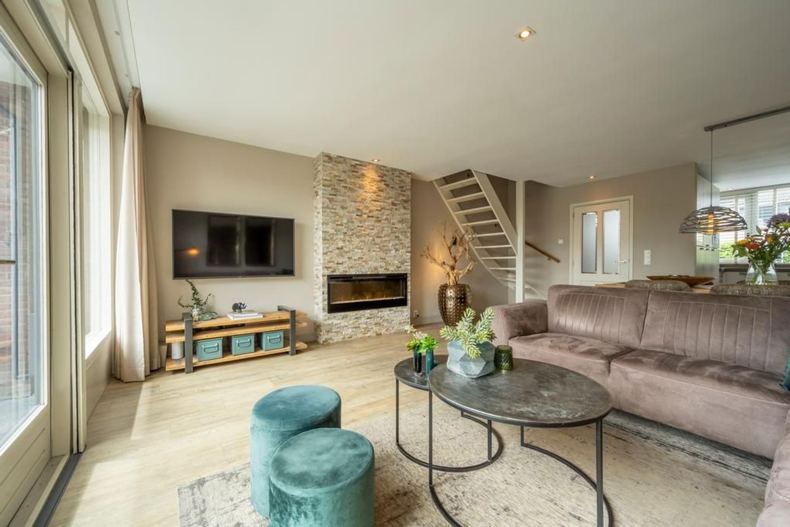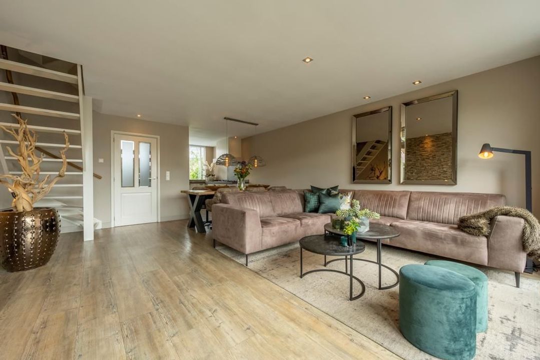 Direct bij binnenkomst valt het hoge afwerkingsniveau en de prettige ruimtebeleving van deze woning u op. De hal biedt toegang tot de nette toiletruimte, garderobekast met opbergruimte en de prachtige leefruimte met zitkamer en elektrische haard, eetkamer en de moderne open keuken.