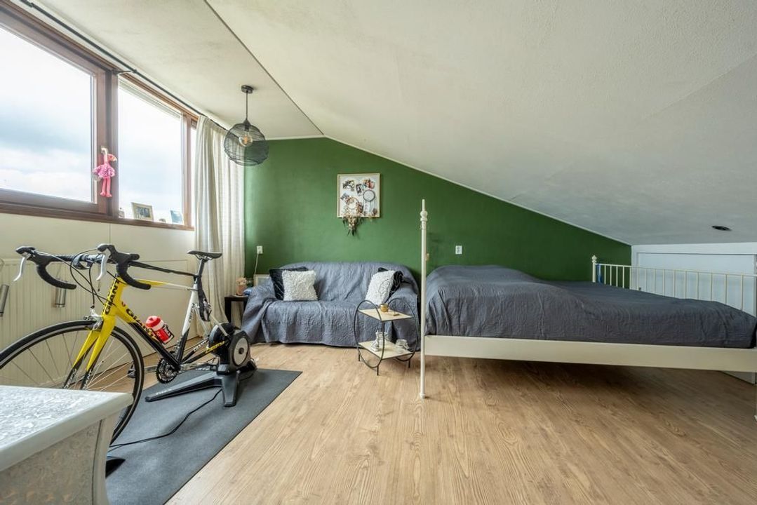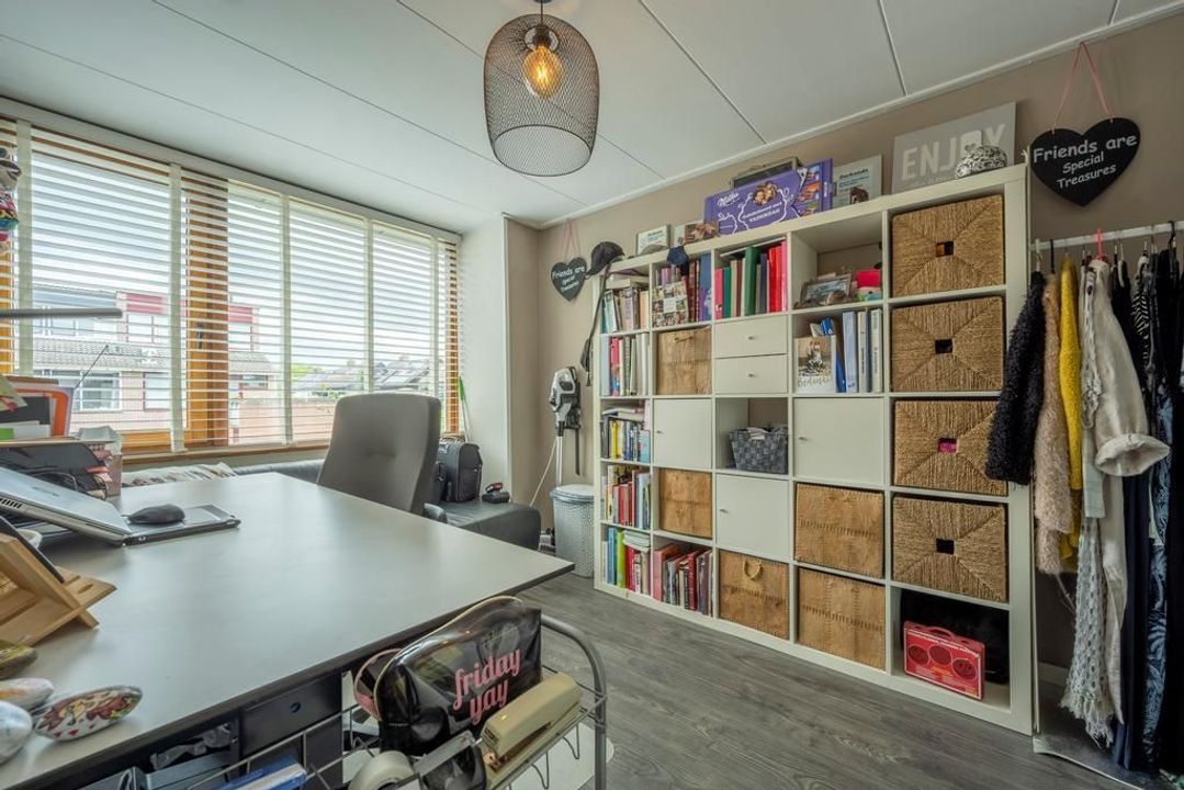 De derde slaapkamer bevindt zicht op de tweede verdieping en is een royale slaapkamer. Er zijn elektrische rolluiken, laminaatvloer en achter de knieschotten is voldoende ruimte voor het opbergen van kerst- en wintersportspullen of koffers. Ook de Cv-ketel heeft hier een plekje gevonden en is netjes weggewerkt.