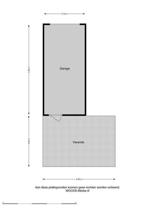 De garage is vanuit de veranda en straatzijde te bereiken en biedt ruimte aan het parkeren van 1 auto en eventueel opslag van andere spullen. Er is elektra en een watervoorziening aanwezig.